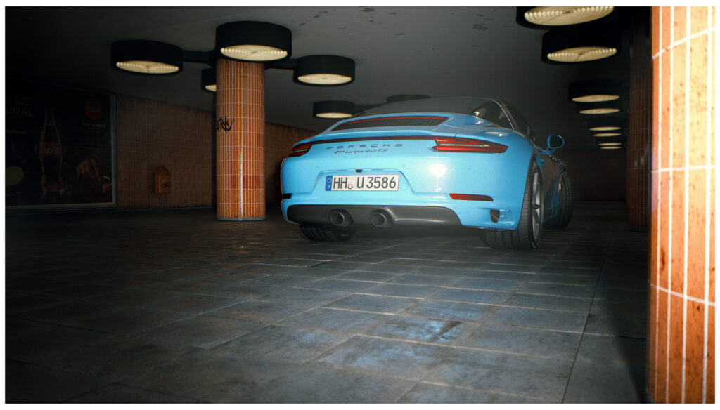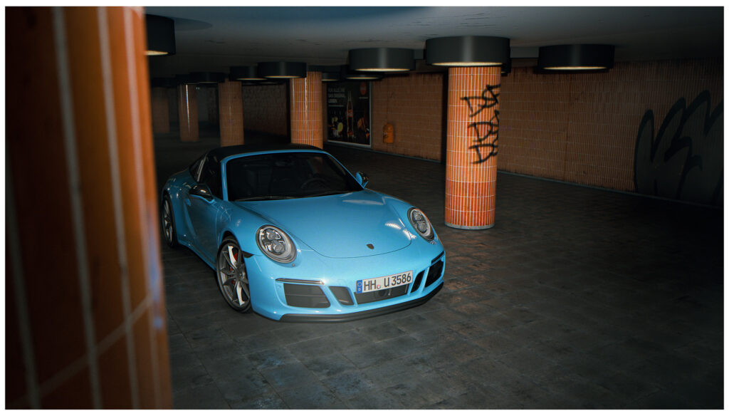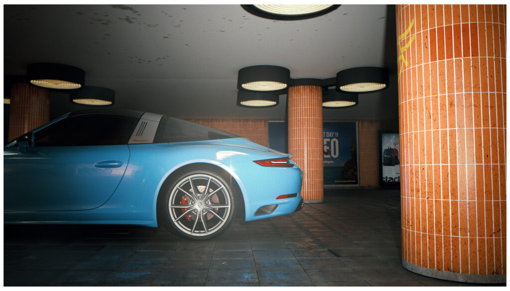 This project is a fully digital set built for a high-end car rendering. The environment was inspired by the architecture of the Berlin Messedamm metro station — a location defined by strong geometry, raw materials, and urban character. The digital set was modeled and assembled in Maya, with a focus on realistic scale and material definition. Lighting and rendering were executed in VRay, using a physically based workflow to ensure accurate reflections, surface response, and controlled highlights on the vehicle. Compositing and integration were handled in Nuke, including multi-pass compositing and environment refinement. Final grading and delivery were completed in DaVinci Resolve, balancing urban mood with commercial clarity.